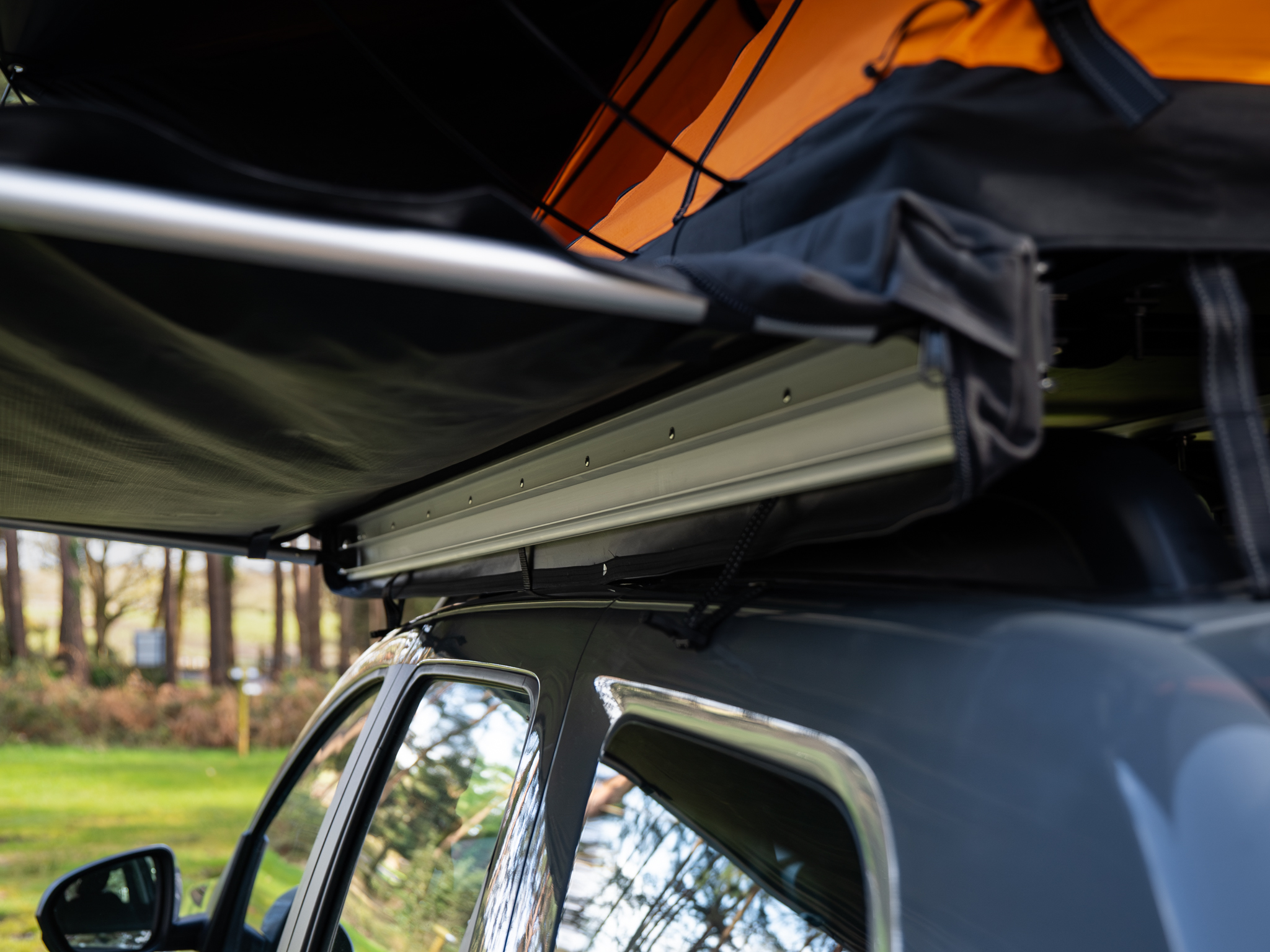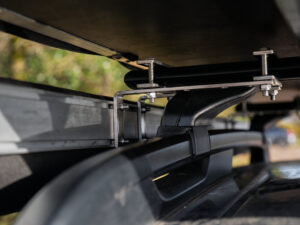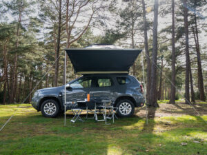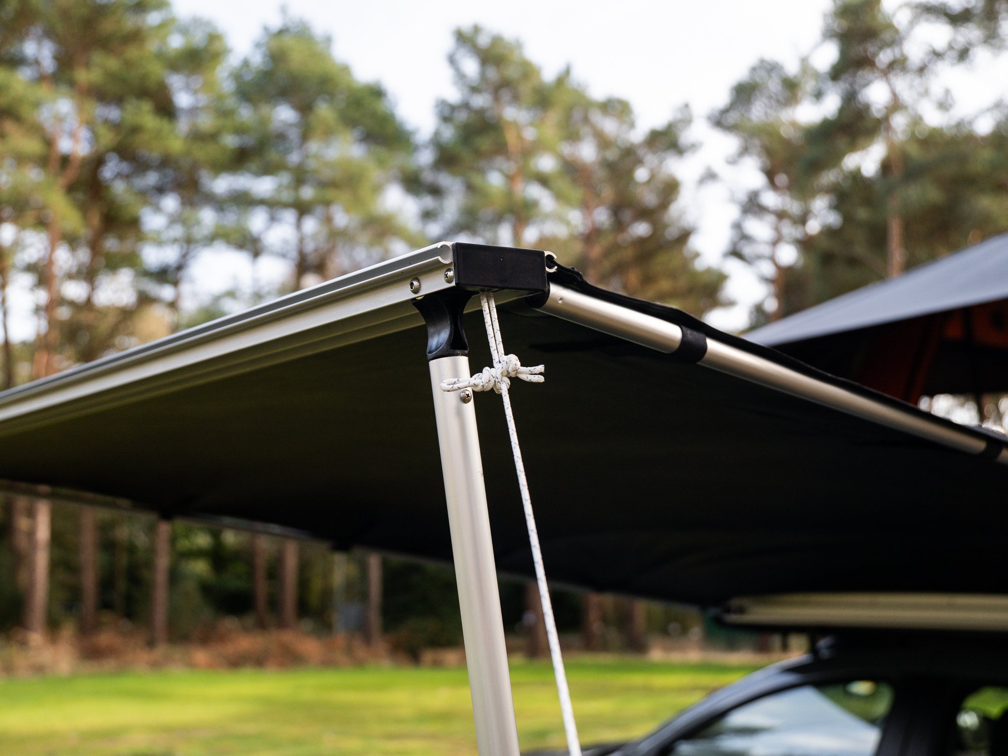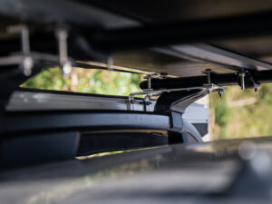 Markiisi kiinnitetään ajoneuvon kattotelineisiin mukana tulevalla universaalilla kiinnitysjärjestelmällä, joten se sopii useimpiin autoihin ja kattotelineisiin. Jalat ovat säädettävät, joten kokonaisuuden voi mukauttaa maaston ja ajoneuvon mukaan.